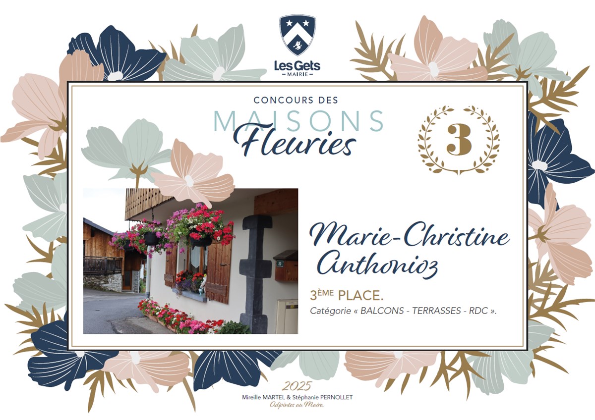 La cérémonie de remise des prix du concours de fleurissement de la commune a eu lieu mardi 2 décembre 2025. Tous les participants inscrits, ainsi que les lauréats des « coups de cœur » et « coups d’œil » du jury étaient invités à se réunir à la salle des fêtes autour de Philippe VINET, maire des Gets, Stéphanie PERNOLLET, adjointe au maire, et Laurence Tricou, conseillère municipale