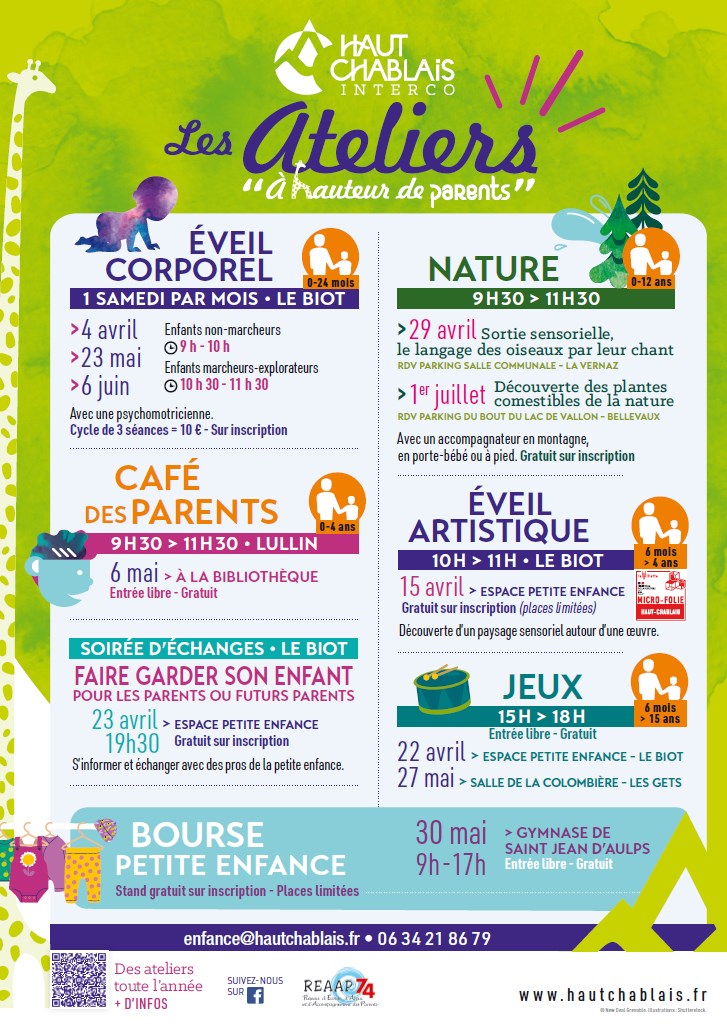 Retrouvez ci-dessous les dates des prochains ateliers de parentalité proposés par le service petite enfance de l'interco du Haut-Chablais.