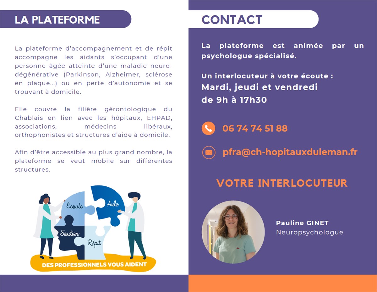 La plateforme d’accompagnement et de répit accompagne les aidants s’occupant d’une personne atteinte d’une maladie neurodégénérative (Parkinson, Alzheimer, sclérose en plaque... ) ou en perte d’autonomie et se trouvant à domicile.