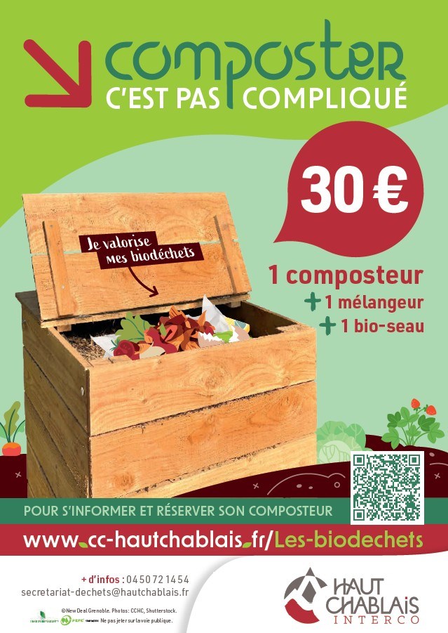 - en vous fournissant un composteur en bois de 400 litres, un guide de compostage et un bio-seau, un mélangeur, au tarif de 30€